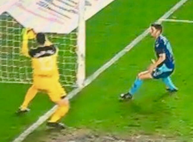 De manera incomprensible ni el asistente 2 ni Moreno Aragón advertían que ese balón que se ve en la imagen traspasa la línea de cal. Fue, por tanto, un gol que le birlaron al Albacete esta temporada y del cual esperan en la expedición manchega no tener que acordarse a final de temporada.