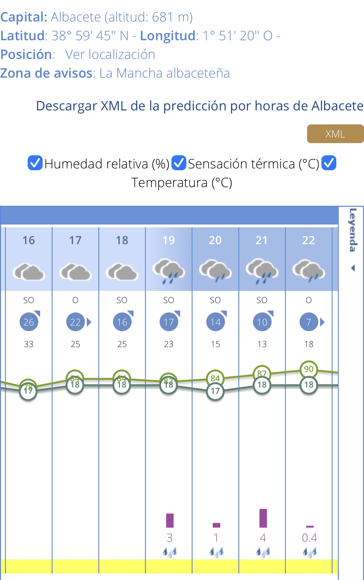 Y es que según informa la AEMET (Agencia Estatal de Meteorología) en torno a la hora del partido de fútbol de esta tarde de sábado hay probabilidades importantes de lluvias sobre la ciudad. Estas son las predicciones: