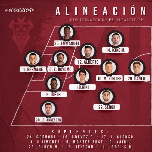 Ya es oficial el once inicial del Albacete Balompié en su partido frente al San Fernando. Correspondiente a la 26a jornada de liga en Primera RFEF, Rubén de la Barrera ha optado por la siguiente formación: