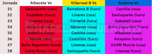 El calendario apremia. La clasificación se aprieta un poco más y Albacete, Villarreal B y Andorra de manifiestan como claros aspirantes a la primera plaza del grupo y a su ascenso directo al fútbol profesional.