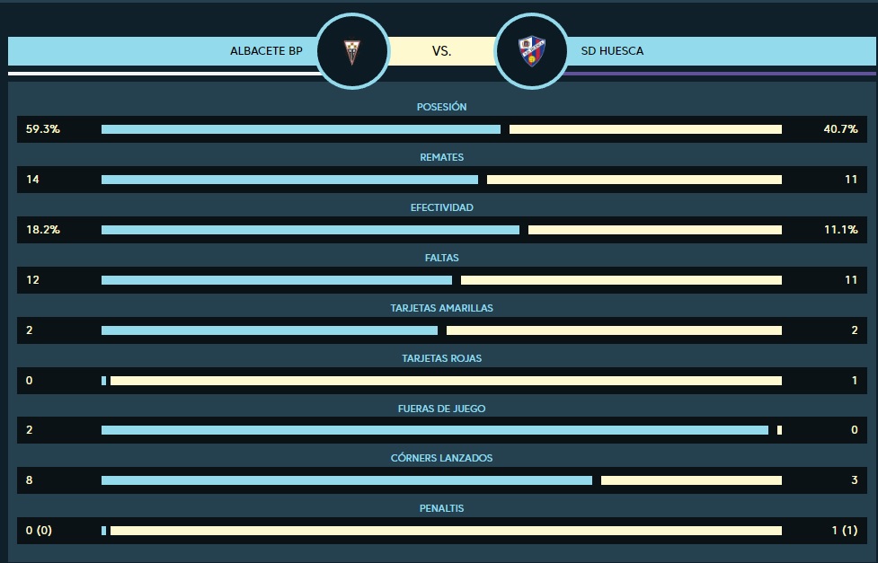 Las estadísticas del triunfo del Albacete frente al Huesca, sube la eficacia en remates a puerta