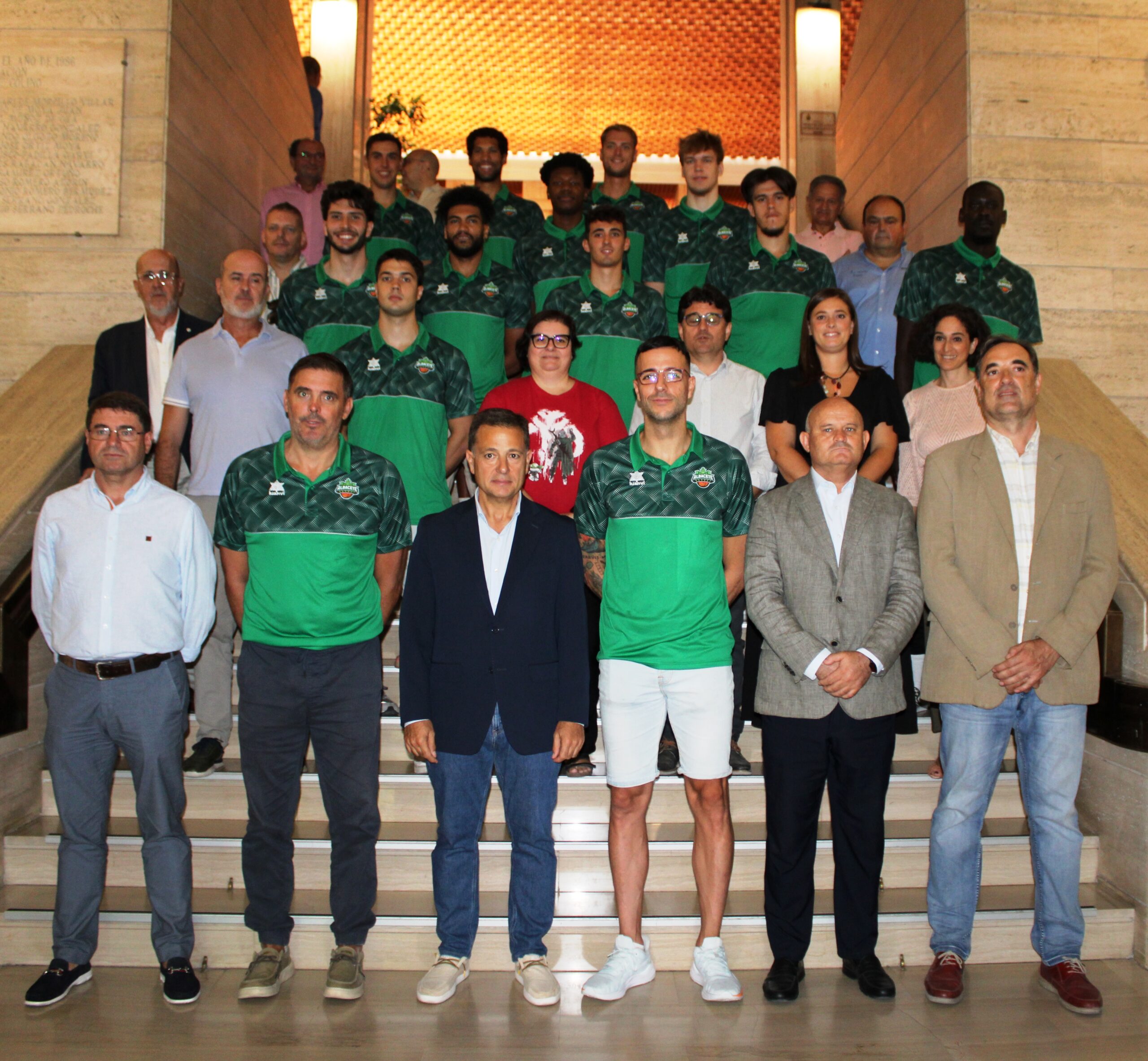 Manuel Serrano se ha pronunciado de este modo durante la presentación de la primera plantilla del Bueno Arenas Albacete Basket para la temporada 2024-2025 que ha tenido lugar esta mañana en el salón de Plenos, acompañado por el concejal de Deportes, Francisco Villaescusa, representantes de los diferentes grupos políticos del Ayuntamiento, el presidente del Albacete Basket, Jacinto Navarro, la plantilla al completo, el capitán del equipo, Álvaro Marín, el entrenador, David Varela, jugadores históricos y patrocinadores.
