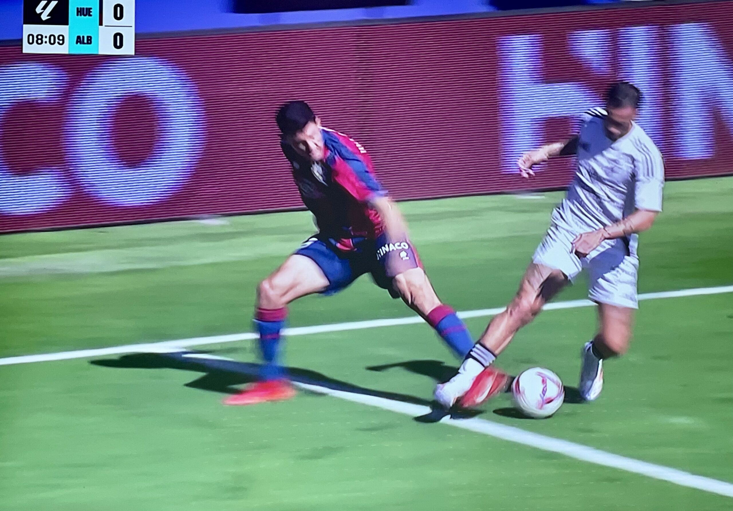 Vergonzoso robo al Albacete Balompié en El Alcoraz. A los 8’ minutos, Lazo era derribado al límite del área y el VAR consideró, tras la repetición, que la acción era punible. Penalti.
