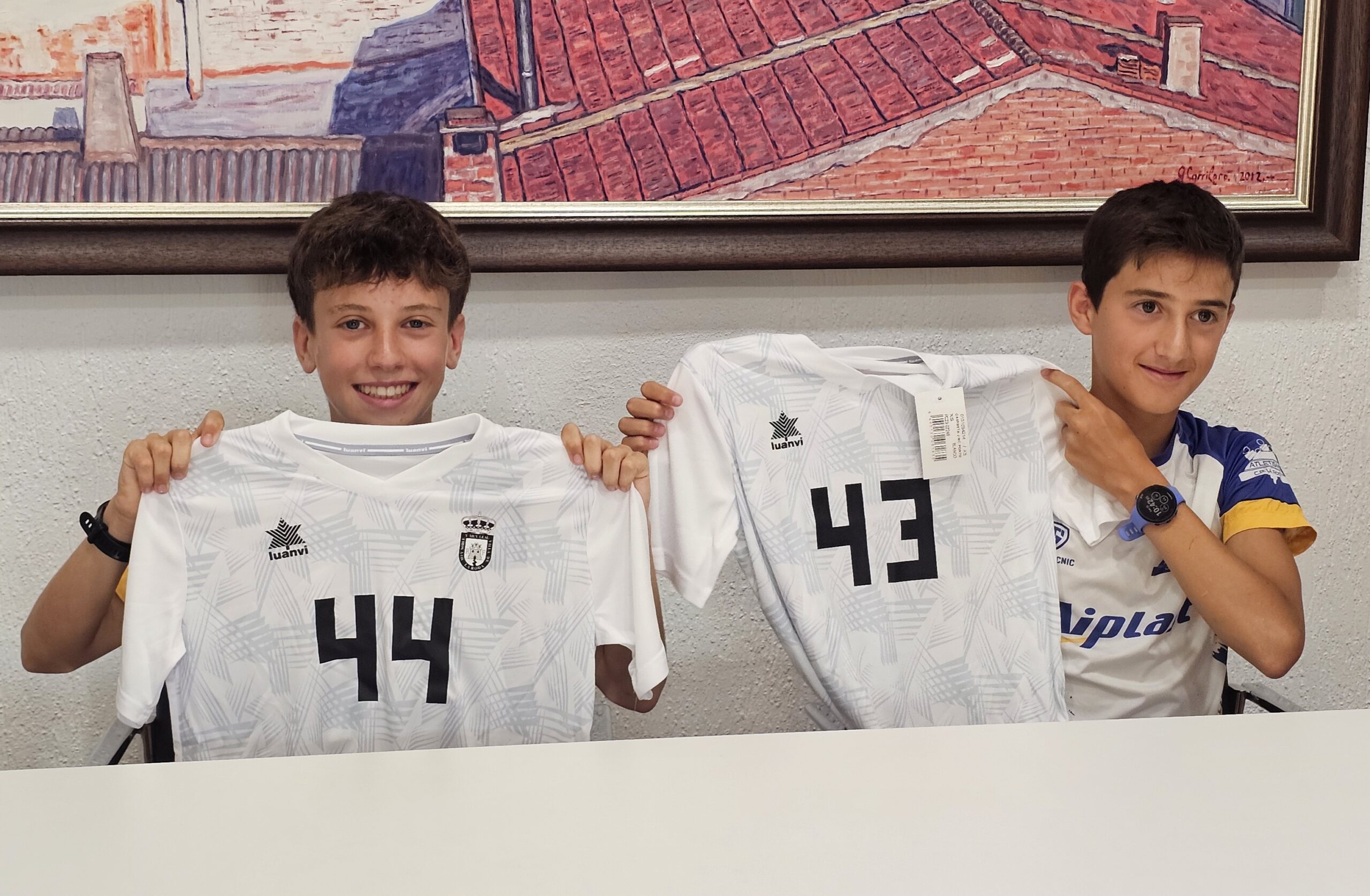 El alcalde de La Roda ha recibido en su despacho a Carlos Lucas de Toro y Rodrigo Lozano, por su participación en la prueba nacional Sub12 individual y les ha hecho entrega de la camiseta con su número