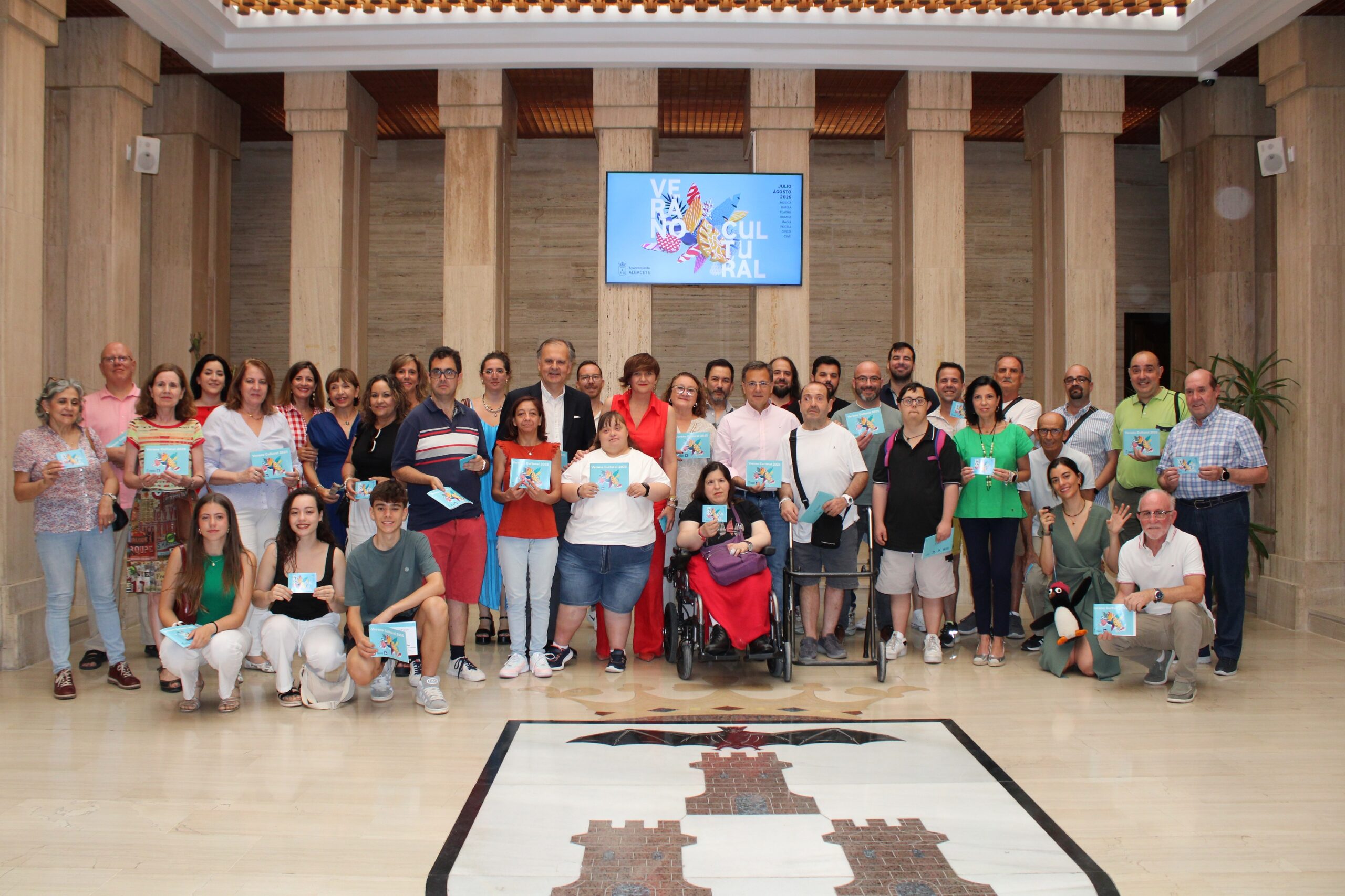 • El alcalde de Albacete, Manuel Serrano, ha animado a disfrutar de las más de 80 propuestas de calidad que ofrece este año la programación del Verano Cultural durante los meses de julio y agosto en más de 35 espacios de la capital y pedanías durante la presentación oficial que esta mañana ha tenido lugar en el salón de Plenos del Ayuntamiento, acompañado por la concejala de Cultura, Elena Serrallé, la de Mayores, Gala de la Calzada, la de Barrios y Pedanías, Llanos Navarro, y numerosos participantes de esta oferta estival que convertirá a nuestra ciudad en un gran escenario al aire libre.