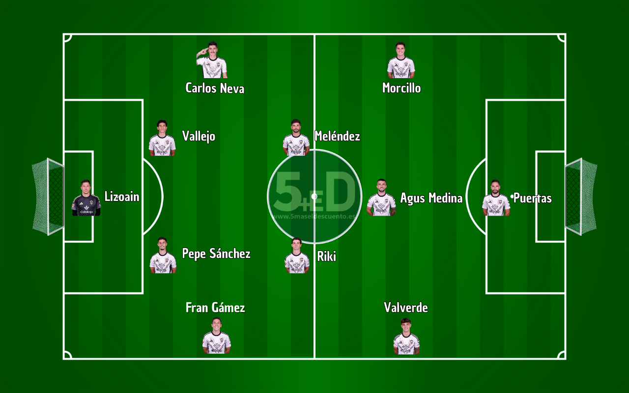 En la izquierda, Jon Morcillo es indiscutible y volverá a ser la principal referencia ofensiva desde la banda. Por la derecha, Víctor Valverde apunta a su primera titularidad de la temporada. Más adelantados, Antonio Puertas y Agus Medina podrían formar una doble referencia con mucha movilidad, alternando posiciones para dar dinamismo en ataque.