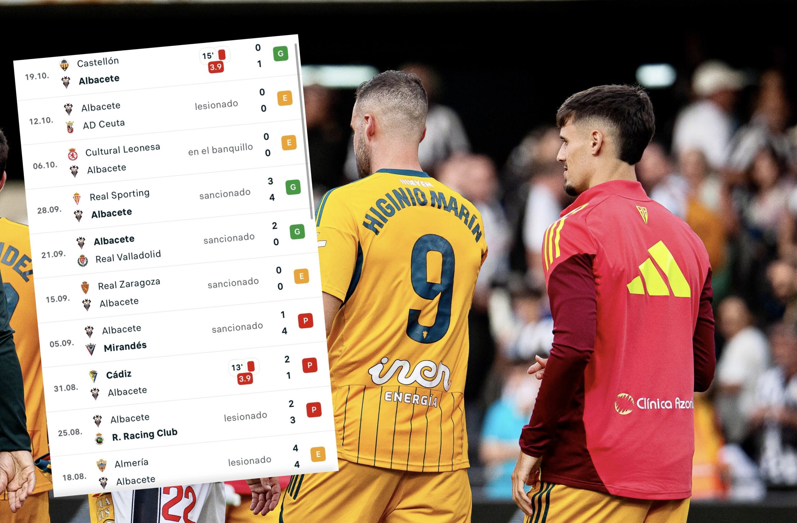 La temporada de Higinio Marín está muy lejos de lo que se esperaba en el Albacete Balompié. El delantero murciano, llamado a ser el referente ofensivo del equipo, apenas ha tenido protagonismo en este inicio de curso. Solo 26 minutos disputados en las diez primeras jornadas —el 3% del total posible— reflejan una realidad preocupante para un futbolista del que se esperaba mucho más y que, entre sanciones y lesiones, se ha convertido en uno de los grandes quebraderos de cabeza para Alberto González.