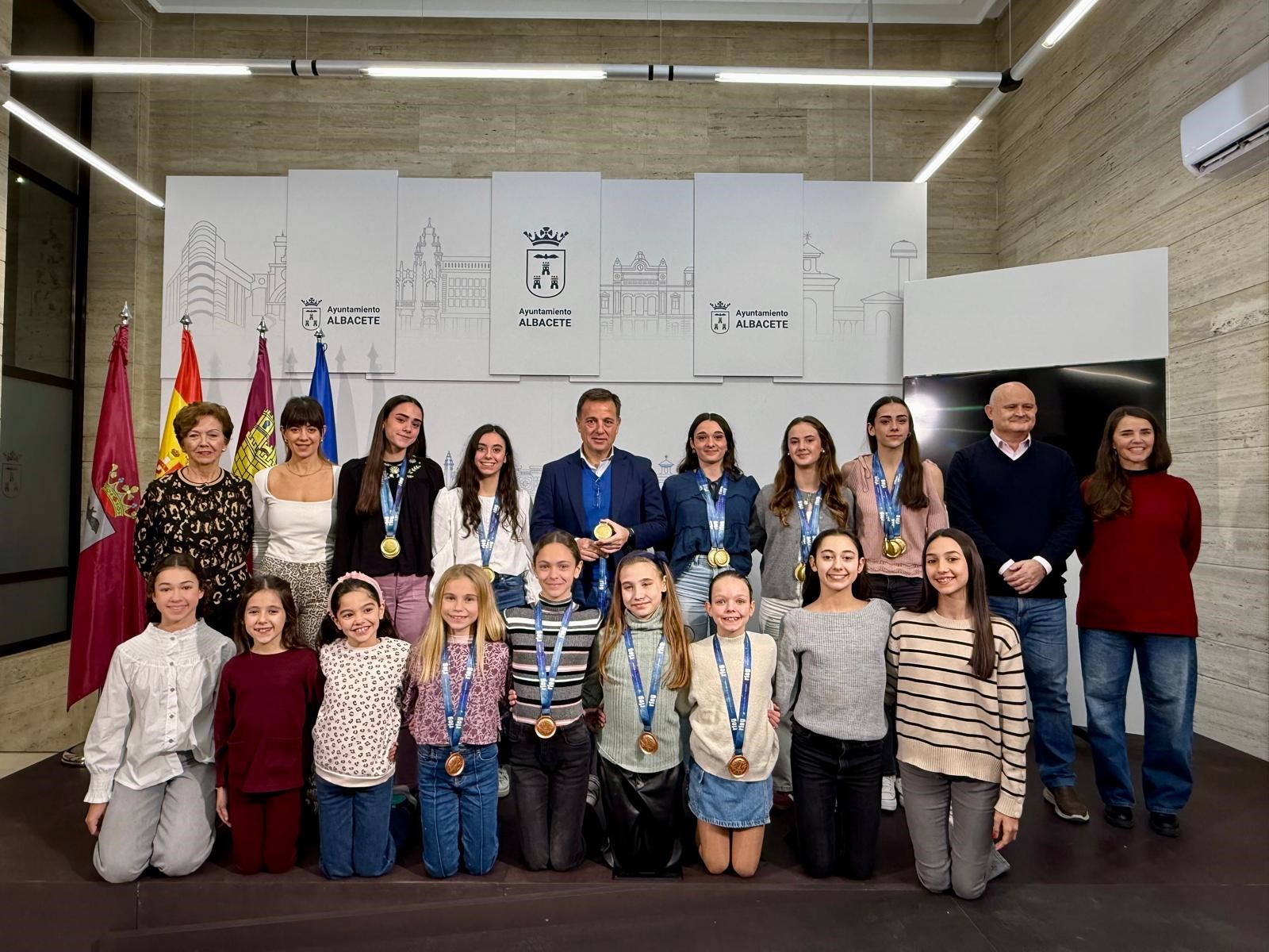 El alcalde Manuel Serrano ha recibido a un grupo de chicas del Club Palas que se han alzado con varias medallas en el Campeonato de España de Conjuntos Absolutos de gimnasia rítmica, que se ha desarrollado recientemente en el Movistar Arena de Madrid.
