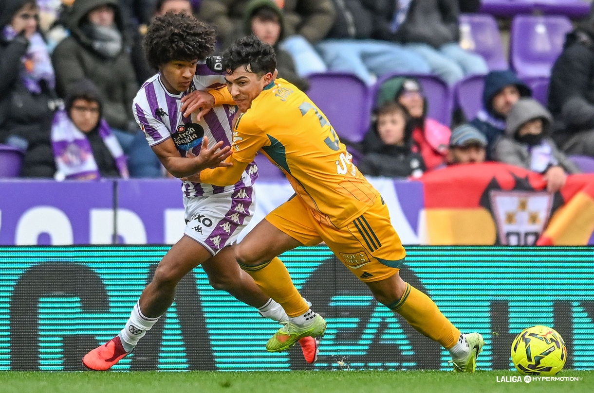 El jugado hoy en Zorrilla ha sido, sin duda, el mejor partido de Jonathan Gómez con el Albacete Balompié. El lateral zurdo cedido por el PAOK griego se está beneficiando notablemente de la novedosa línea de cinco que está implantando Alberto González en la defensa albacetista. Hoy, muchísimo más liberado en ataque que jugando con cuatro defensas, el partido del ex de la Real Sociedad ha sido espectacular.