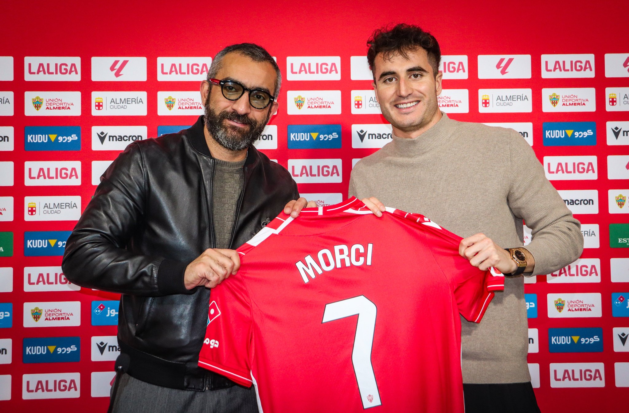 Este lunes Jon Morcillo ha sido presentado oficialmente como jugador de Almería en una sala de prensa, la del UDA Stadium, donde el CEO rojiblanco, El Assy, ha pedido empezar con un minuto de silencio en memoria de los fallecidos por el trágico accidente de tren en Adamuz (Córdoba). El futbolista, arropado por sus padres, ha mostrado la felicidad por empezar esta nueva etapa: «He podido firmar en Primera División pero sin embargo he venido a Almería por el gran interés que me han demostrado desde el principio. Querían que viniera y ahora espero compensar en el campo el esfuerzo que el Almería ha hecho por mí».
