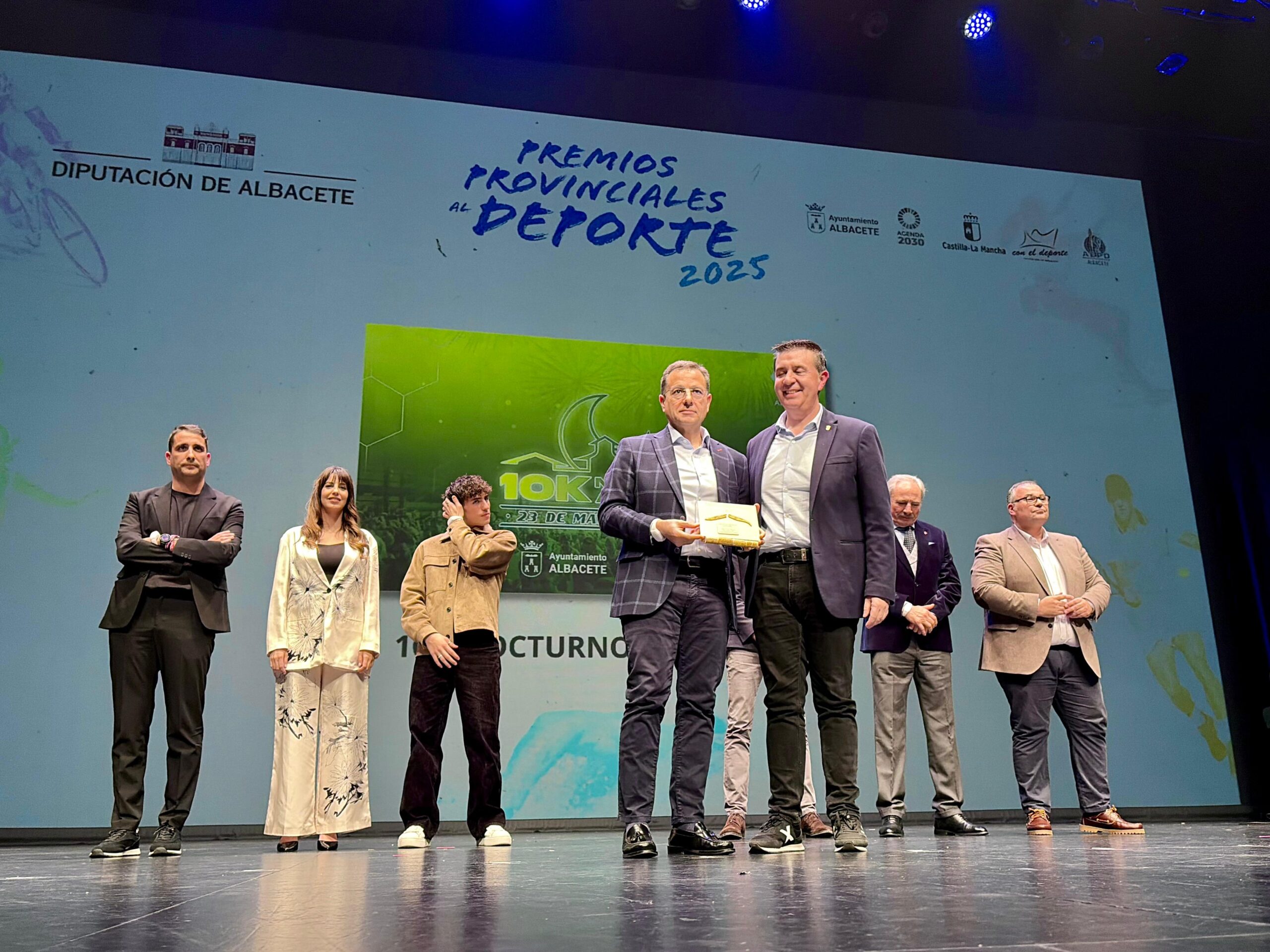 El alcalde Manuel Serrano ha recogido el premio a Mejor Evento Deportivo 2025, que ha correspondido a la 10K Nocturna Ciudad de Albacete y que ha sido entregado durante la gala de los Premios Provinciales del Deporte en el Teatro Circo.