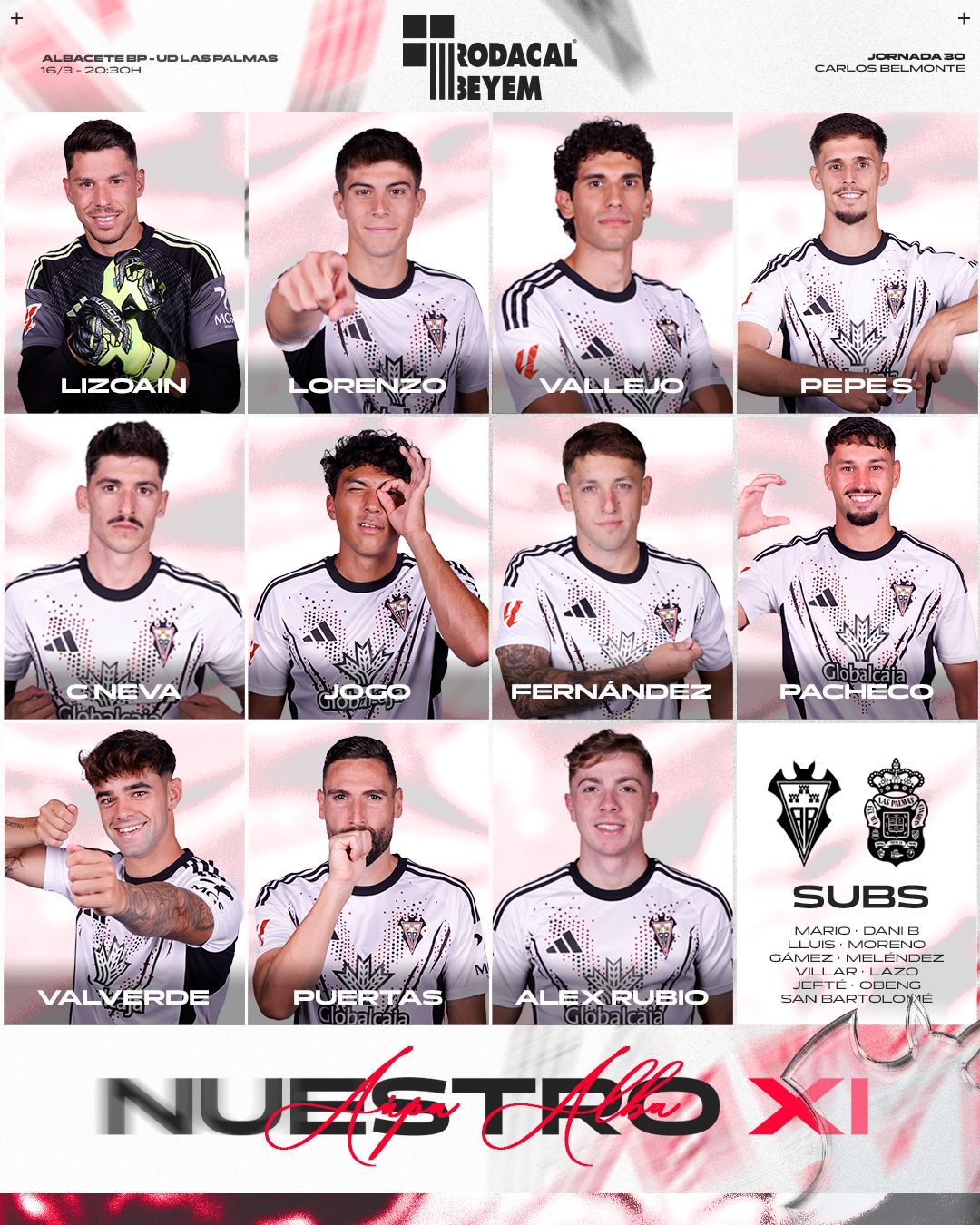 El Albacete Balompié ha hecho oficial el once titular con el que saldrá el conjunto de Alberto González en el Carlos Belmonte. El partido comenzará a las 20:30 horas de esta tarde con la siguiente formación:
