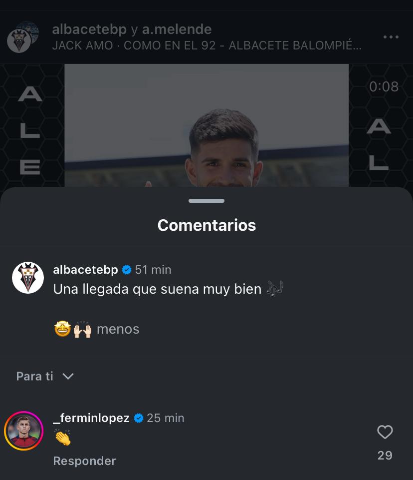 Fermín López, actualmente convocado con la Selección Española y que viene de jugar 28 minutos en el último partido contra Albania, dedicaba unos minutos desde su concentración en la Eurocopa de Alemania para reaccionar en las redes sociales del Albacete Balompié a la noticia del fichaje de Ale Meléndez. Con unos iconos de aplauso, el […]