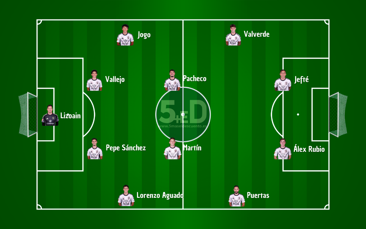 El Albacete Balompié se enfrentará al Huesca a partir de las 16:15 de la tarde de hoy en El Alcoraz. Los de Alberto buscarán llevarse los tres puntos de tierras altoaragonesas con el siguiente once titular: Raúl Lizoain; Lorenzo Aguado, Vallejo, Pepe, Jogo; Ale Meléndez, Villar; Puertas, Valverde, Jefté y Álex Rubio.